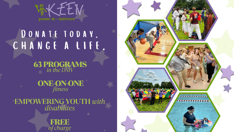 Make a difference with your donation today! Your generous gift will help KEEN provide recreational and exercise programs to children with disabilities throughout the Greater DC area. Always free of charge to all who participate. Help KEEN make a difference in the communities we serve. Your support will allow KEEN Athletes to participate in non-competitive exercise, allowing them to build confidence, spend time with peers, and be part of an inclusive community. Contact Claire Sussman at Claire.Sussman@keengrdc.org or 301-775-7572 for more information.